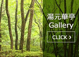 片品渓谷沿いに立つ湯元華亭。京都の庭師が作った、日本庭園の中に露天風呂が広がります。湯船から景色を眺めれば、そこはまるで京都の庭園。初夏からは新緑を秋は赤・黄・オレンジの多彩な紅葉、冬には雪見風呂など四季折々風情をお楽しみください。